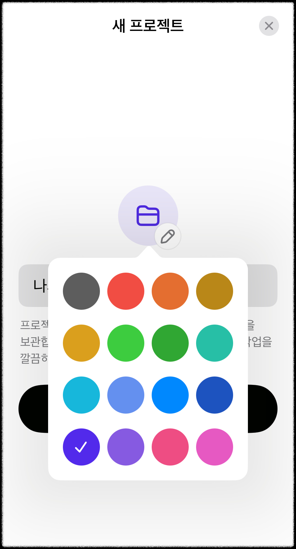 다음으로 폴더 아이콘 색상을 고를 수 있어요. 저는 보라색으로 설정했는데요, 학습과 집중에 도움이 되는 색이라 선택했습니다.